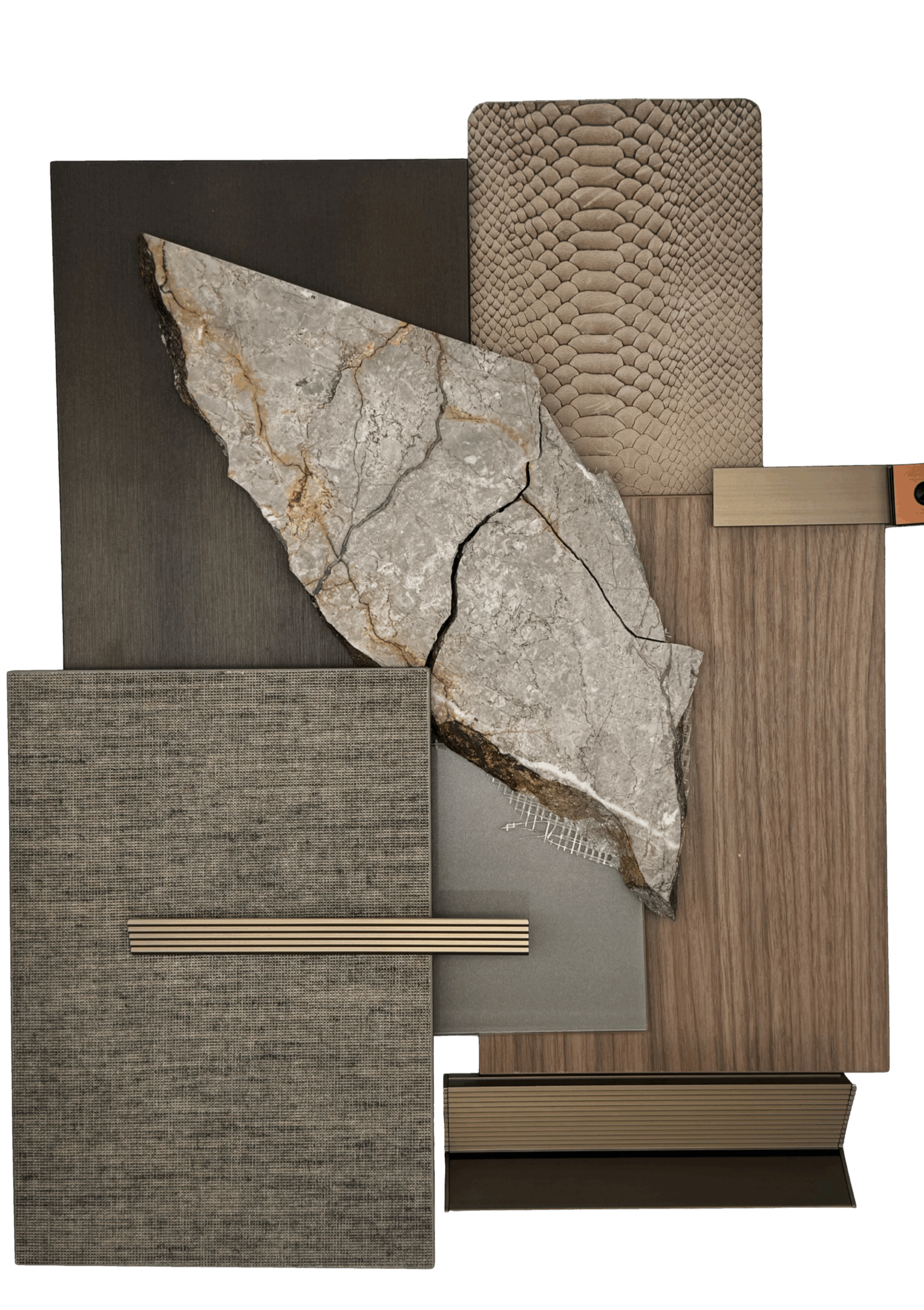 Vanuit het moodboard zijn materialen gekozen die elkaar versterken.