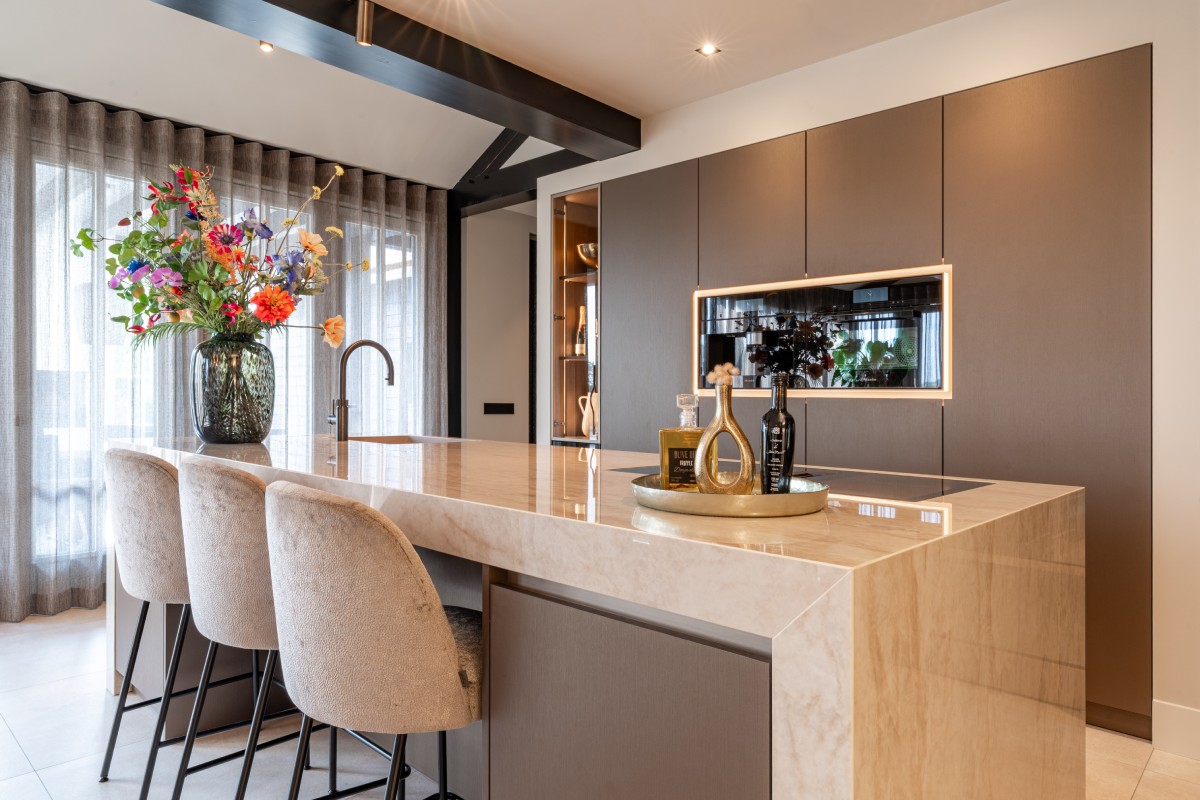 Daarnaast zorgen we ervoor dat deze structuren naadloos doorlopen over de verschillende fronten. Net als bij fineer ontstaat er zo één geheel, waarin lijnen en patronen rustig in elkaar overlopen. Dit vraagt om precisie en maatwerk, precies waar wij bij Mereno goed in zijn.