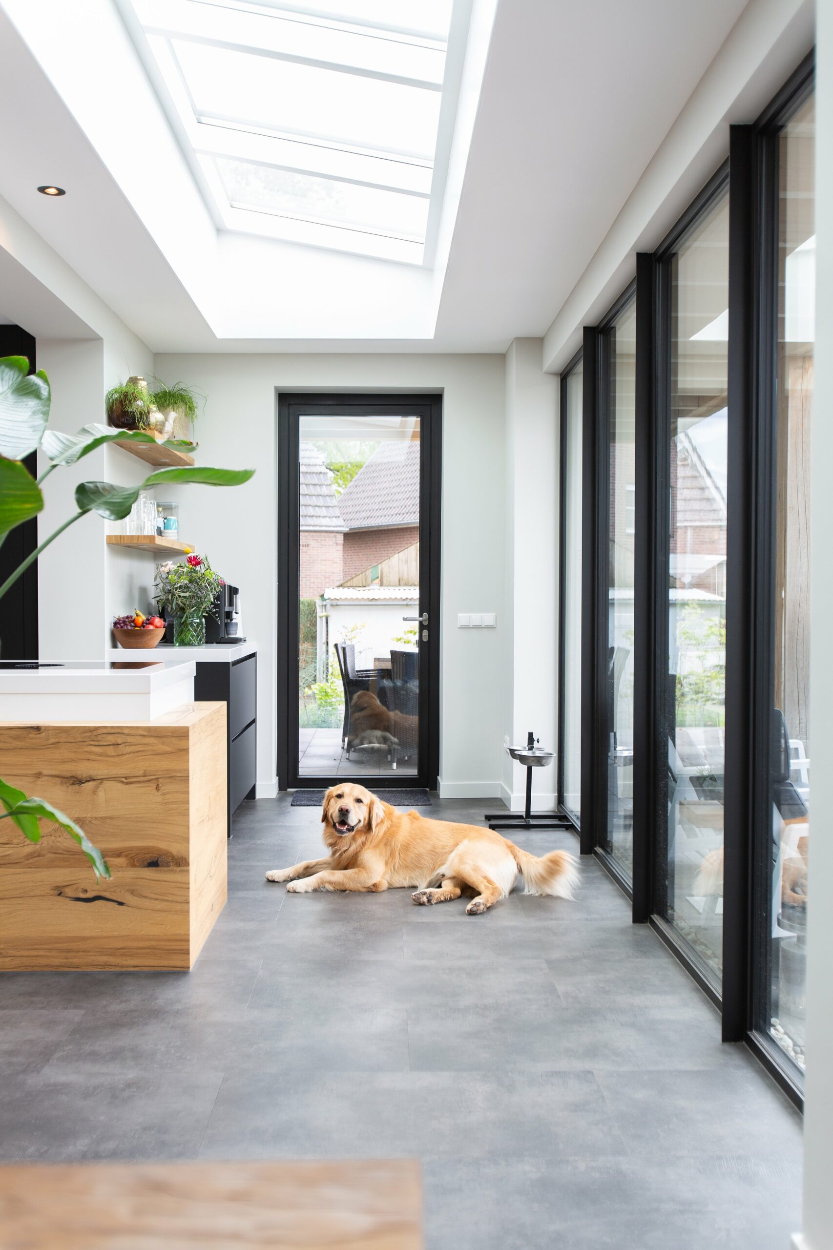Voor de kastenwand is er gekozen voor het front Mereno Fenix, in kleur Nero Ingo. Deze matte fronten hebben een rustige uitstraling en zijn onderhoudsvriendelijk. Het kookeiland is voorzien van Mereno Monza fronten in de kleur premium wit met een bijpassend composieten werkblad. Het unieke in deze keuken is de ombouw van wildfineer, welke de klant zelf heeft uitgezocht in onze fabriek!