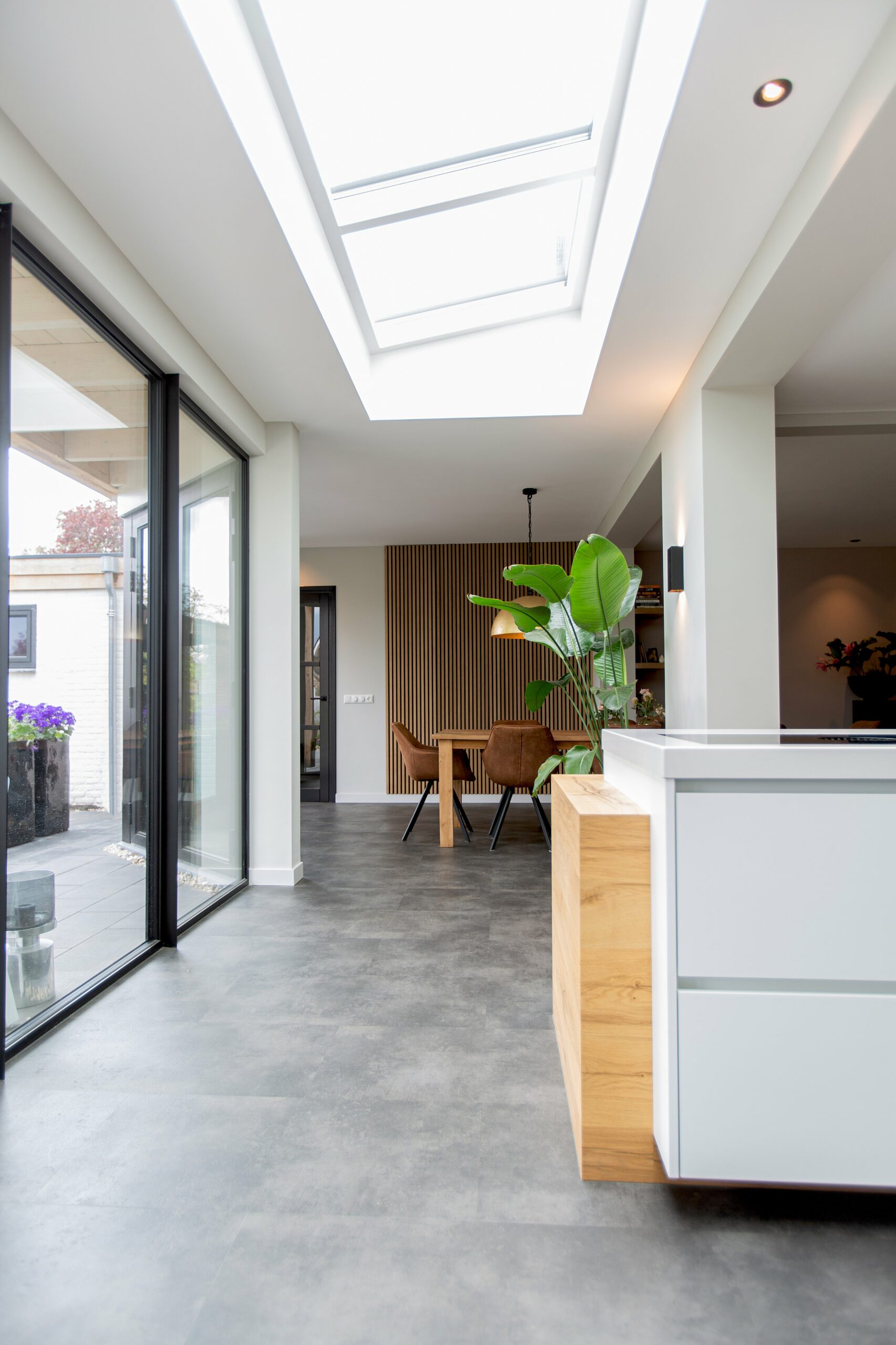 Een groot kookeiland met een unieke ombouw van wildfineer. Dit wildfineer is door de klant zelf uitgezocht in onze fabriek in Meijel. Ook is er een koffiehoek gerealiseerd, in de hoek van de keuken. Deze is voorzien van spots in de wandschappen, waardoor hier extra lichtpunten gerealiseerd zijn.